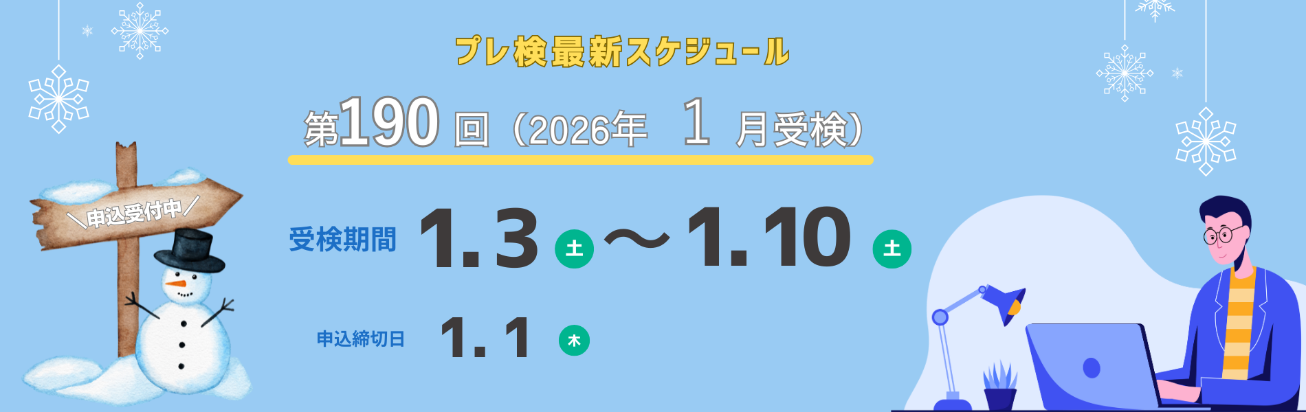 こんにちは!協会スタッフの遠藤です。 第189回プレ検(2025年12月実施)の受検期間が終了しました。今月は、全体として合格率が高く、特に3級・準2級では、基礎を丁寧に整理したうえで試験に臨む姿勢がうかがえました。内容 […]