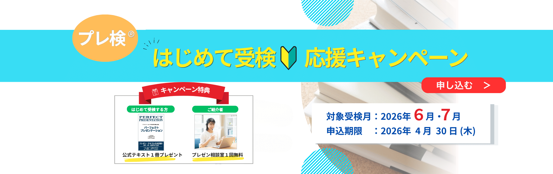 プレ検の受検を通してプレゼンに対する基本的な心構えを身に付けることができたと思います。