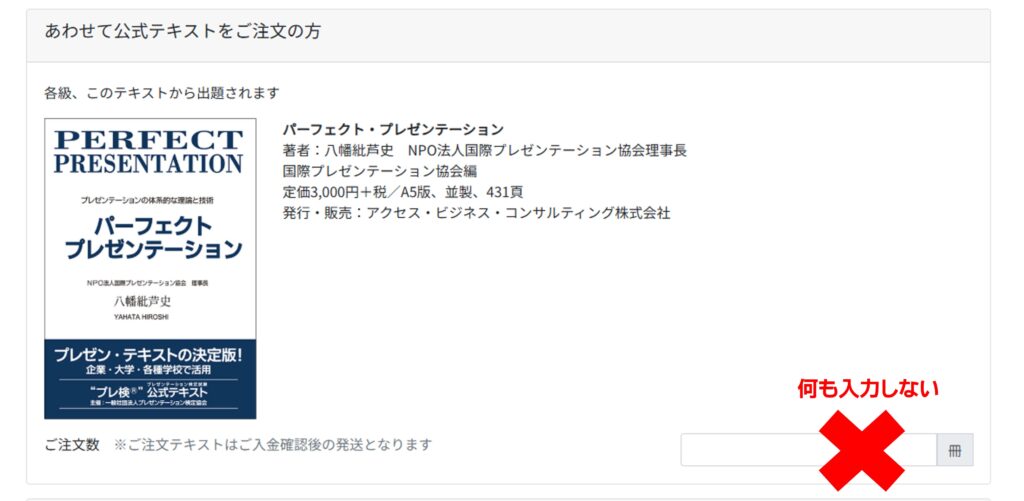受検申込の際、テキストの注文欄への入力はしないでください。