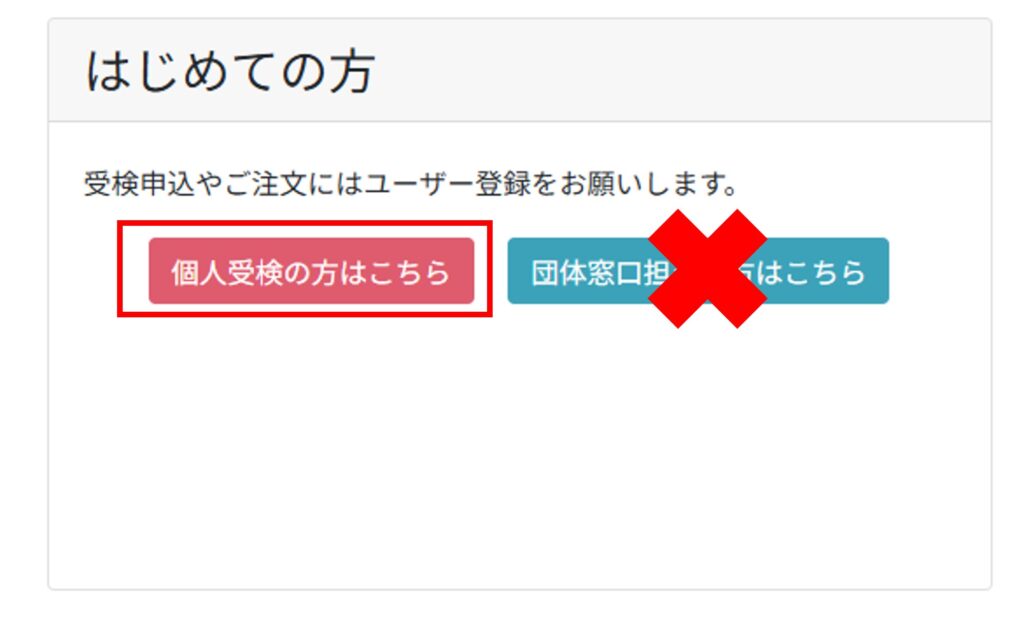 マイページのログイン画面から「個人受検の方はこちら」をクリックしてユーザー登録をしてください。