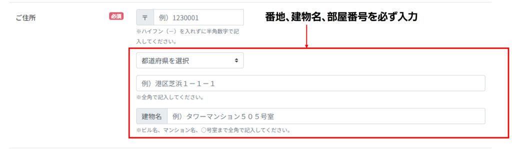 ご住所の入力漏れが増えております。住所は番地までご記入いただいているかご確認ください。