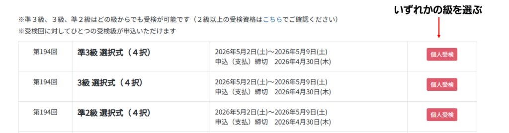 *初めての方は準3級、3級、準2級の受検が可能です