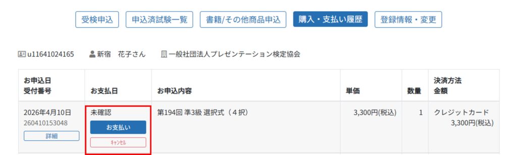 受検申込後、検定料をお支払いください。