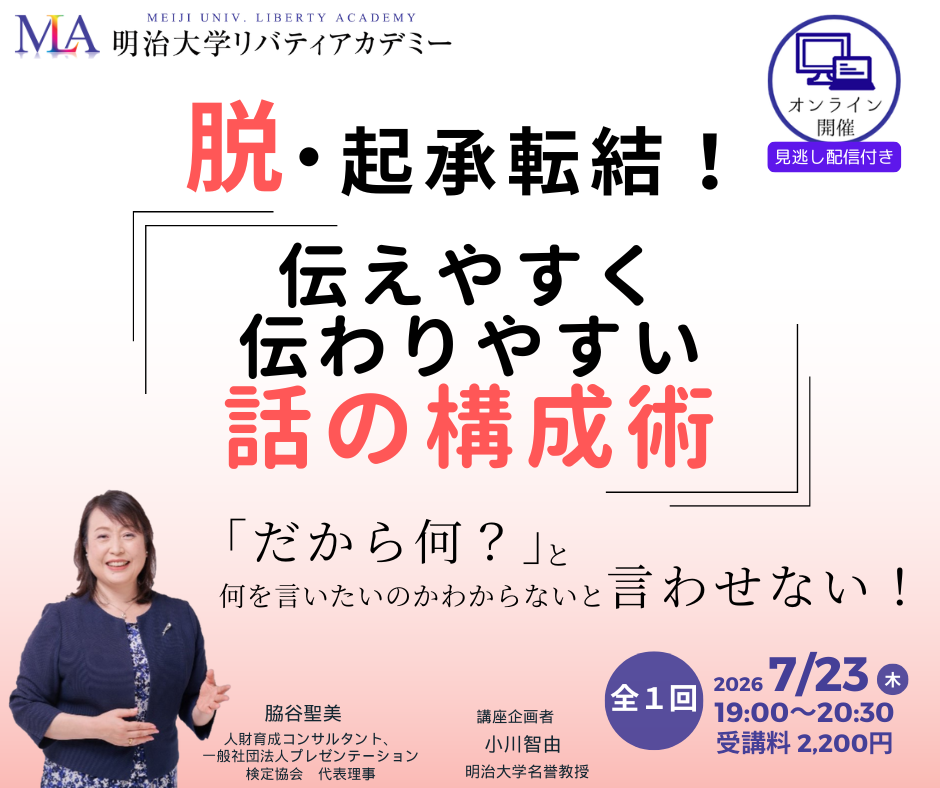 明治大学リバティアカデミー|伝わりやすい話の構成講座 再登壇決定